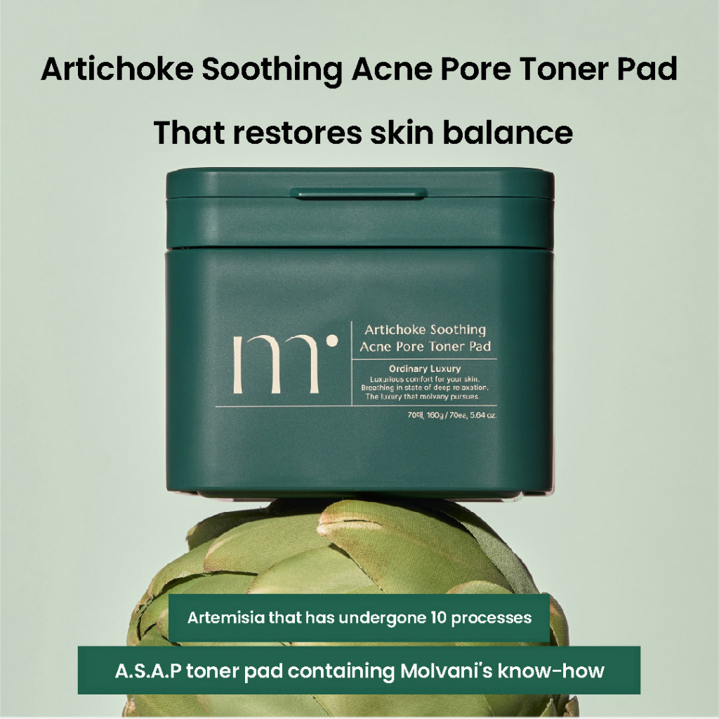 (MOLVANY) Artichoke Soothing Acne Pore Toner Pad 160ml - COCOMO