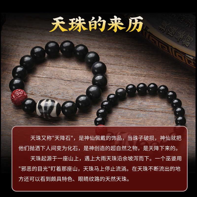 【藏传佛教 开光正品】天然天珠 黑曜石手串 gZi Beads Bracelet 辟邪挡灾 消灾解难 脱离贫穷 消除穷根 招财纳福 吉祥如意 平安健康 风水手链 Fengshui ornaments