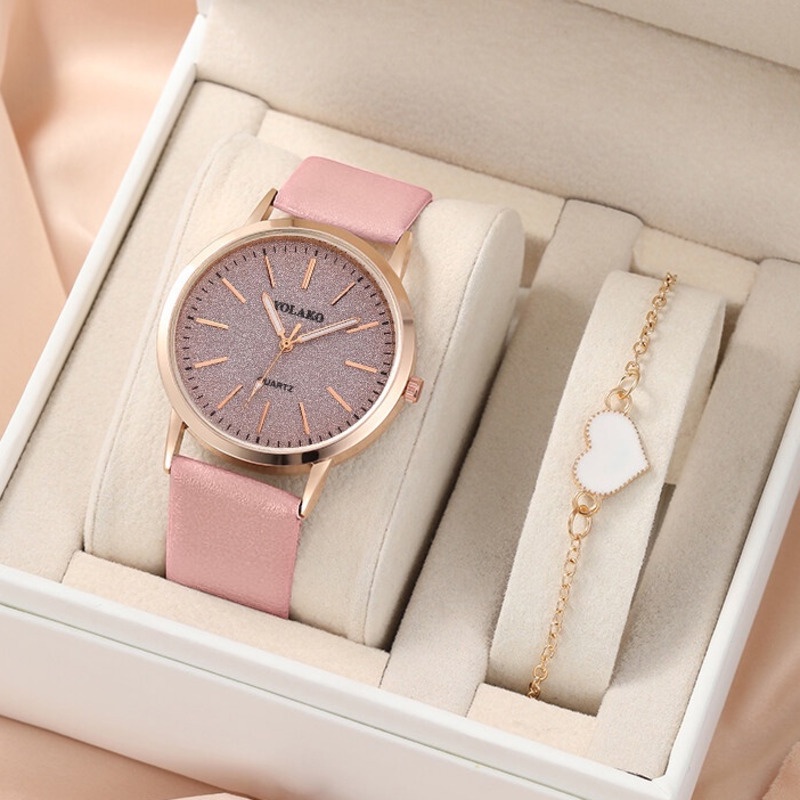 【Watch+Bracelet】Watch Bracelet Set Fashion Starry Sky Leather Strap Women Watches