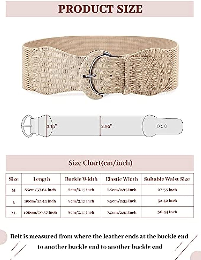• Delicate design: the artificial leather design of the women belts front part makes this wide elastic belt look cool, the belts can help create your curve look, make you look more beautiful and elegant