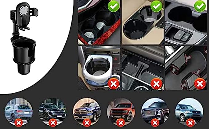 • ? Easy to install: adjust the knob on the cup holder to adapt to the cup holder of the car or truck, and the adjustment button at the back of the car phone holder can easily adjust the width. Various types of mobile phones can find the right width.