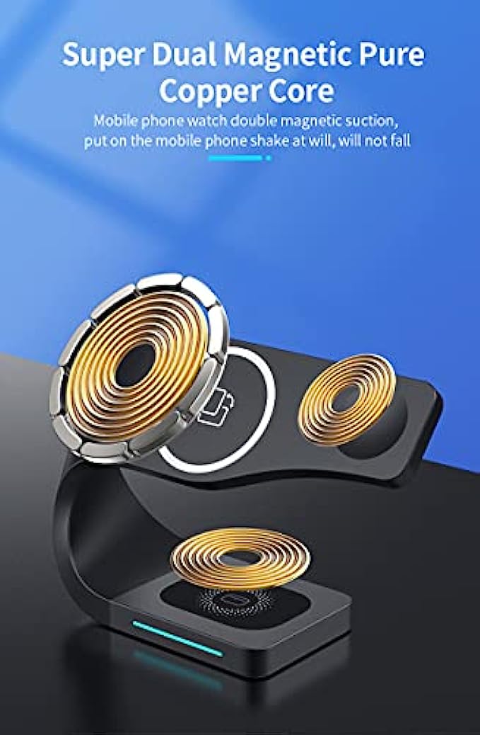 SZWH Wireless Charger, 3 in 1 Fast Wireless Charging,Magnetic connectivity,15W Quick Charge,Security Protection,for AirPods Pro,Apple iWatch, SE/6/5/4/3/2/1