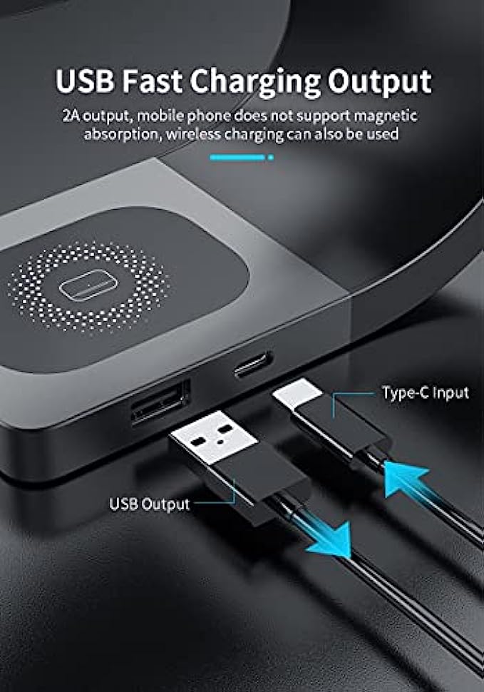 • 【STRONG MAGNETIC ALIGNMENT】Built-in powerful magnets can firmly fix the phone on the wireless charging stand and automatically align the charging area to provide efficient charging.Besides, you can charge your phone in any orientation,so you can watch movies or video in landscape and make calls or send a message in portrait without interruption during the whole charging process.