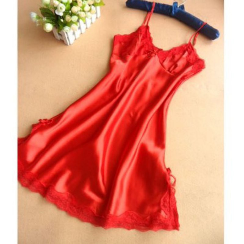 Women nightwear Mini nightgowns deep V straps skirts tempatation silk sleepwear Dress tops women