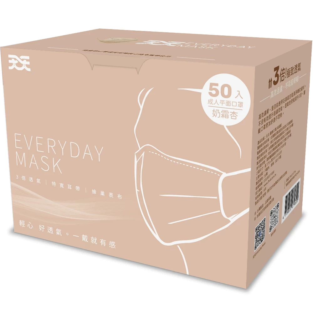 Medical Adult Flat Mask – Light Heart Series (Cream Apricot) – 50 Pieces per Box | 1 Carton = 50 Boxes (2,500 Pieces Total)
