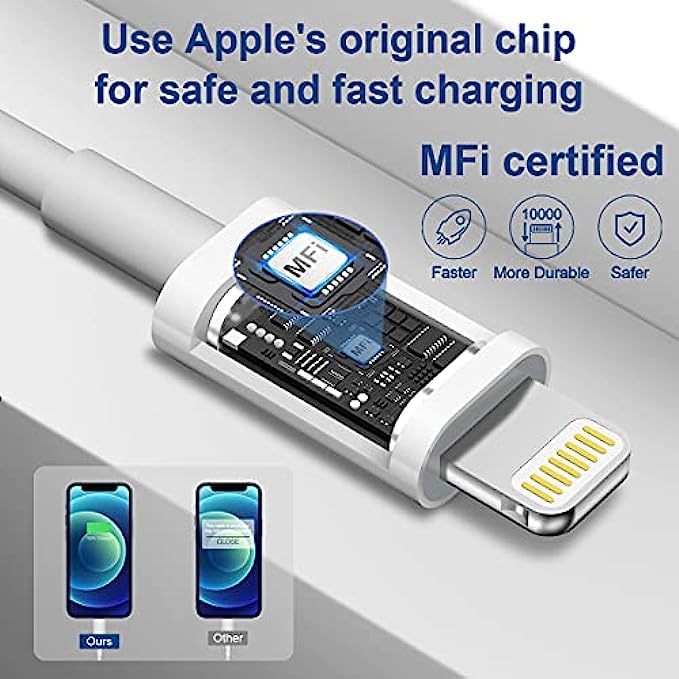 • 【Premium& Durable】- 6 Ft iPhone charging cable to meet all your charging need, lasts 12× longer than other cables and tested to withstand over 5000 bend in strict laboratory tests. The cable has extremely high resistant to splitting and breakage.