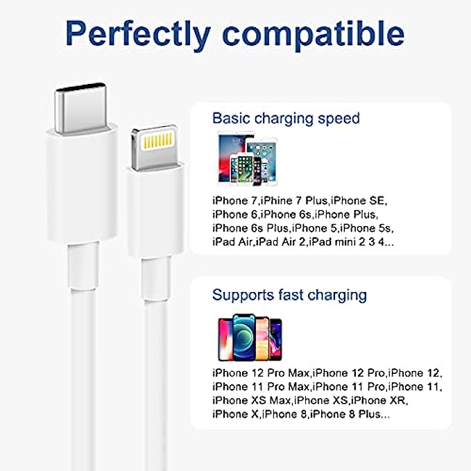 • 【Wide Compatibility】- USB C to Lightning Cable Perfectly compatible with iPhone 13/ 13 Mini/ 13 Pro/ 13 Pro Max/ iPhone 12/ 12 Mini/ 12 Pro/ 12 Pro Max/ 11/ 11 Pro/ 11 Pro Max/ iPhone XS / XS Max / iPhone X/ XR/ iPhone 8/ 8 Plus/ iPhone 7 / 7 Plus/ iPhone 6/ 6s / 6 Plus /6s Plus/ iPhone 5s / 5c / 5 / SE, iPad, iPod